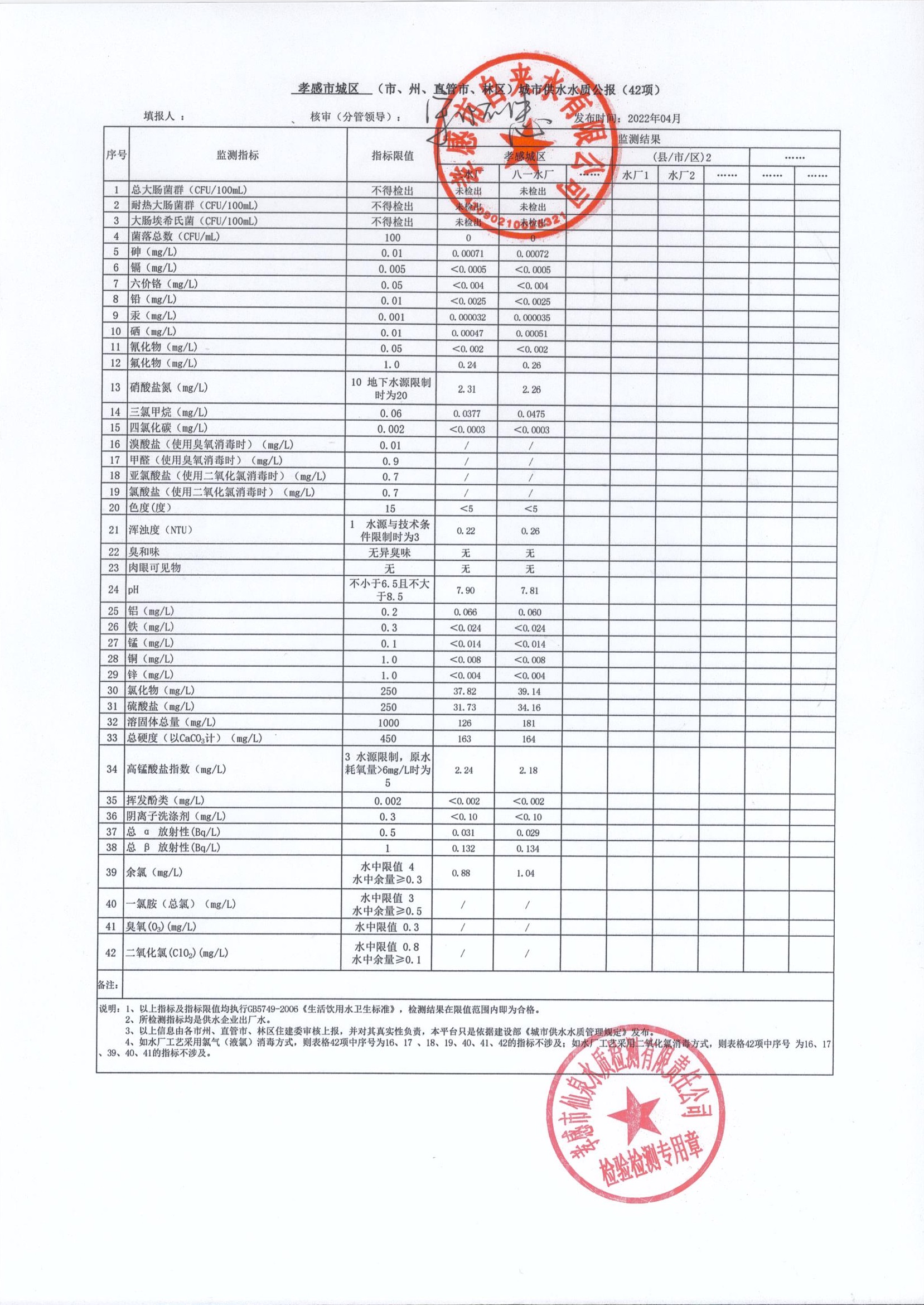 2022年4月水質報告