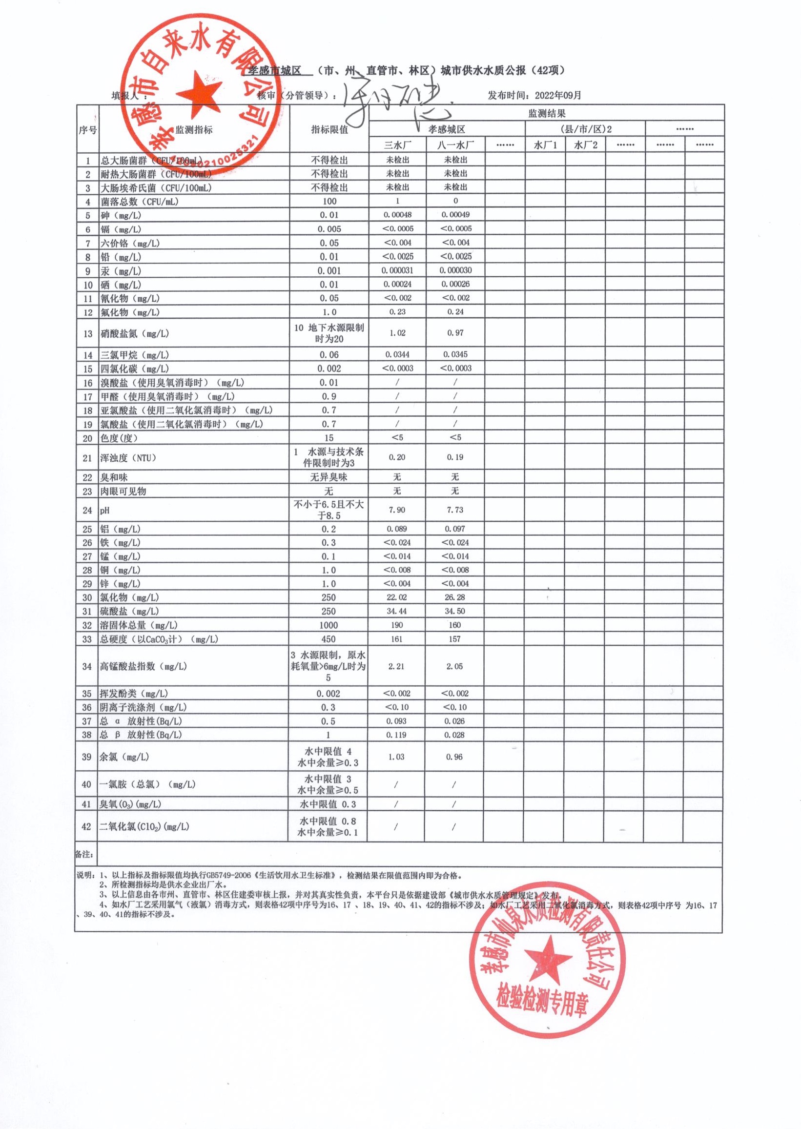 2022年9月水質報告