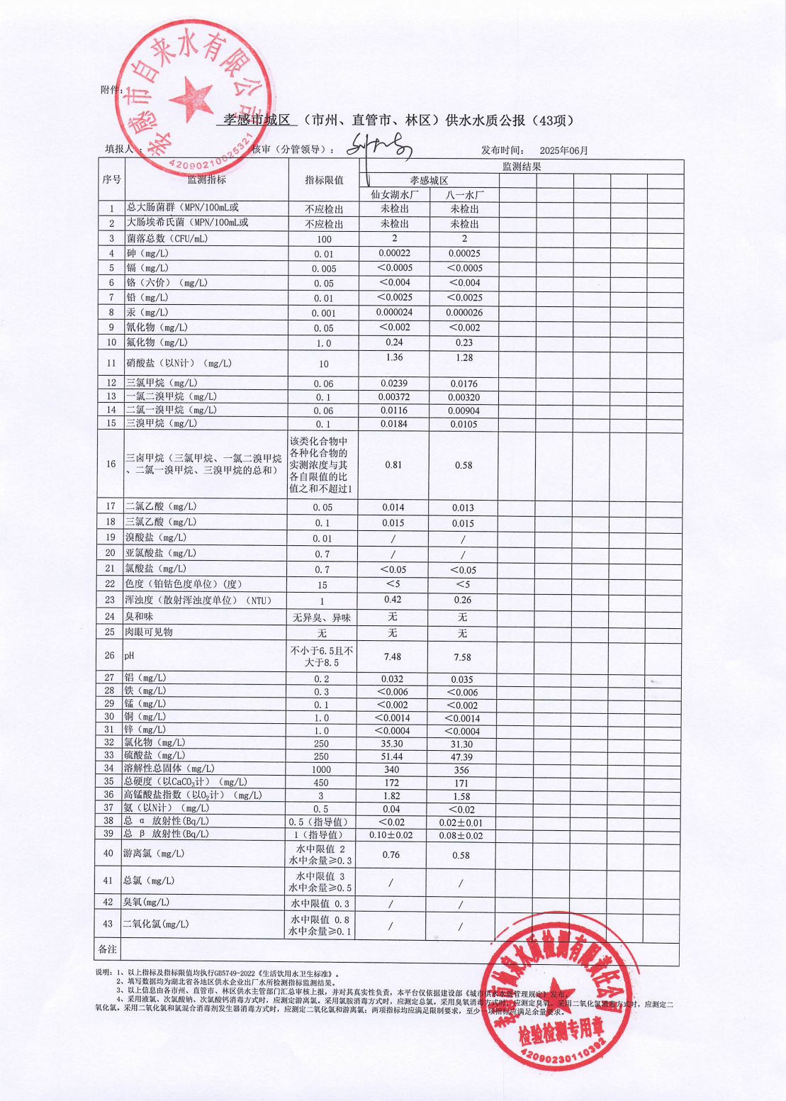2025年6月水質(zhì)報(bào)告