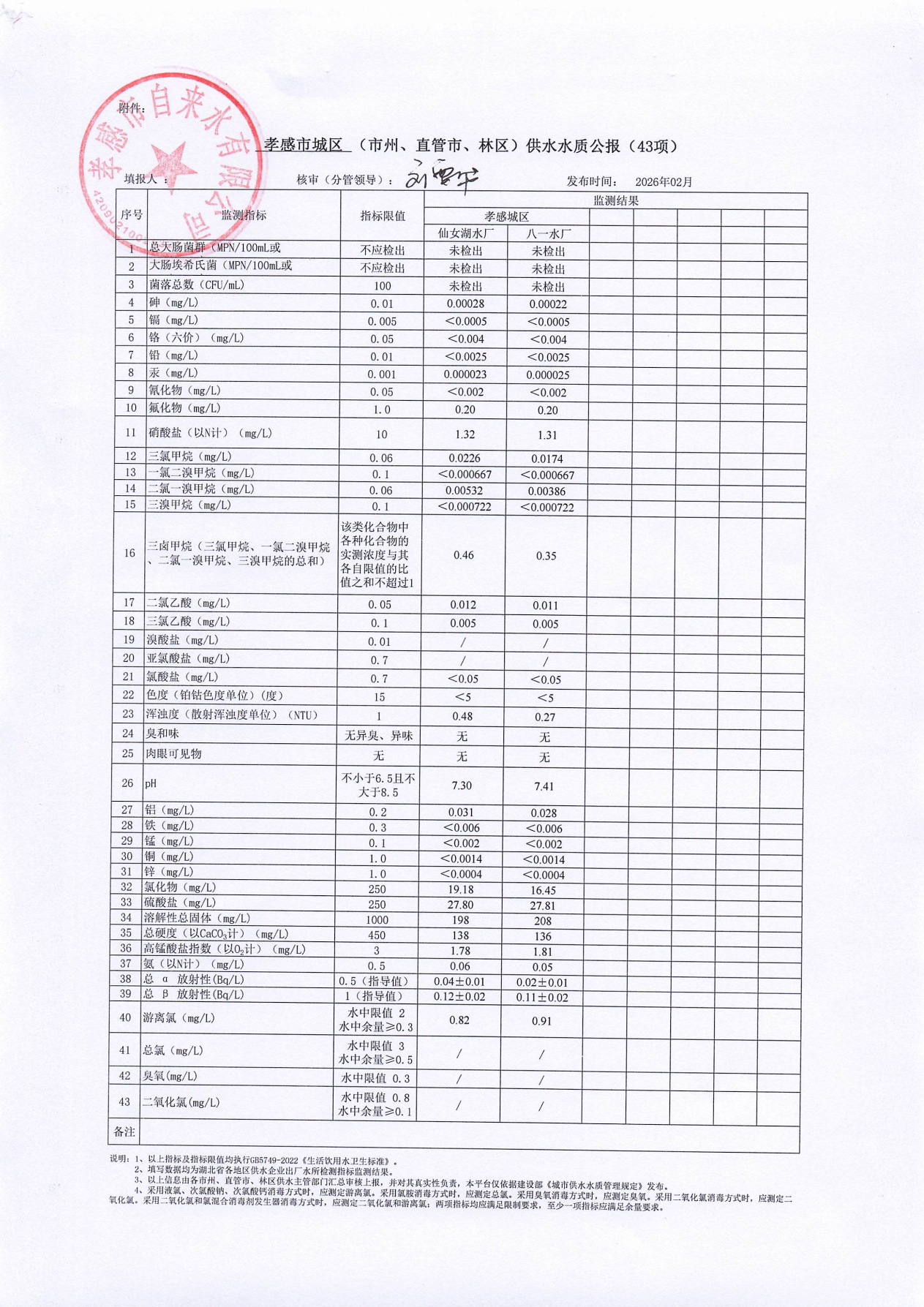 2026年2月水質(zhì)報告
