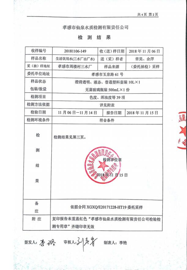 2018年11月水質報告
