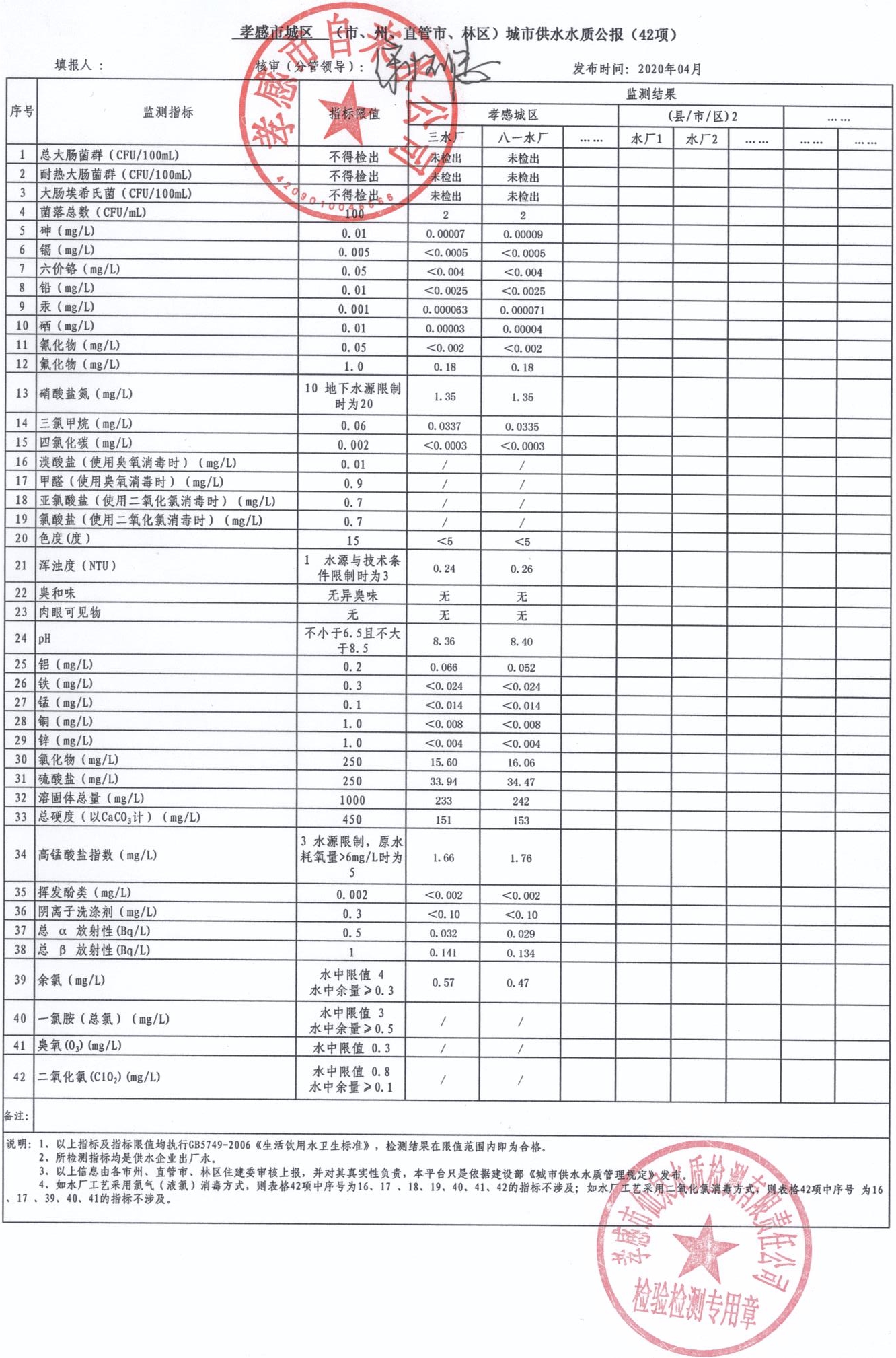 2020年4月水質報告